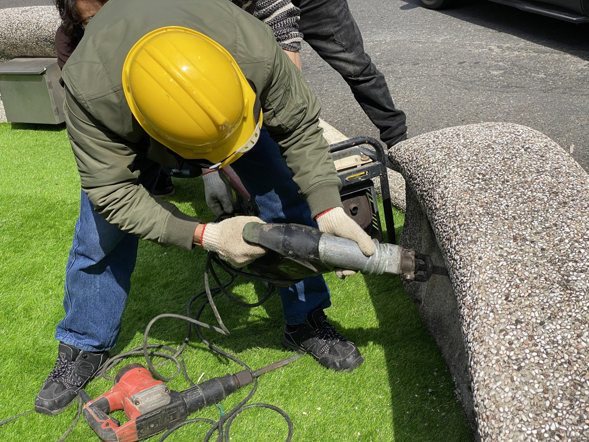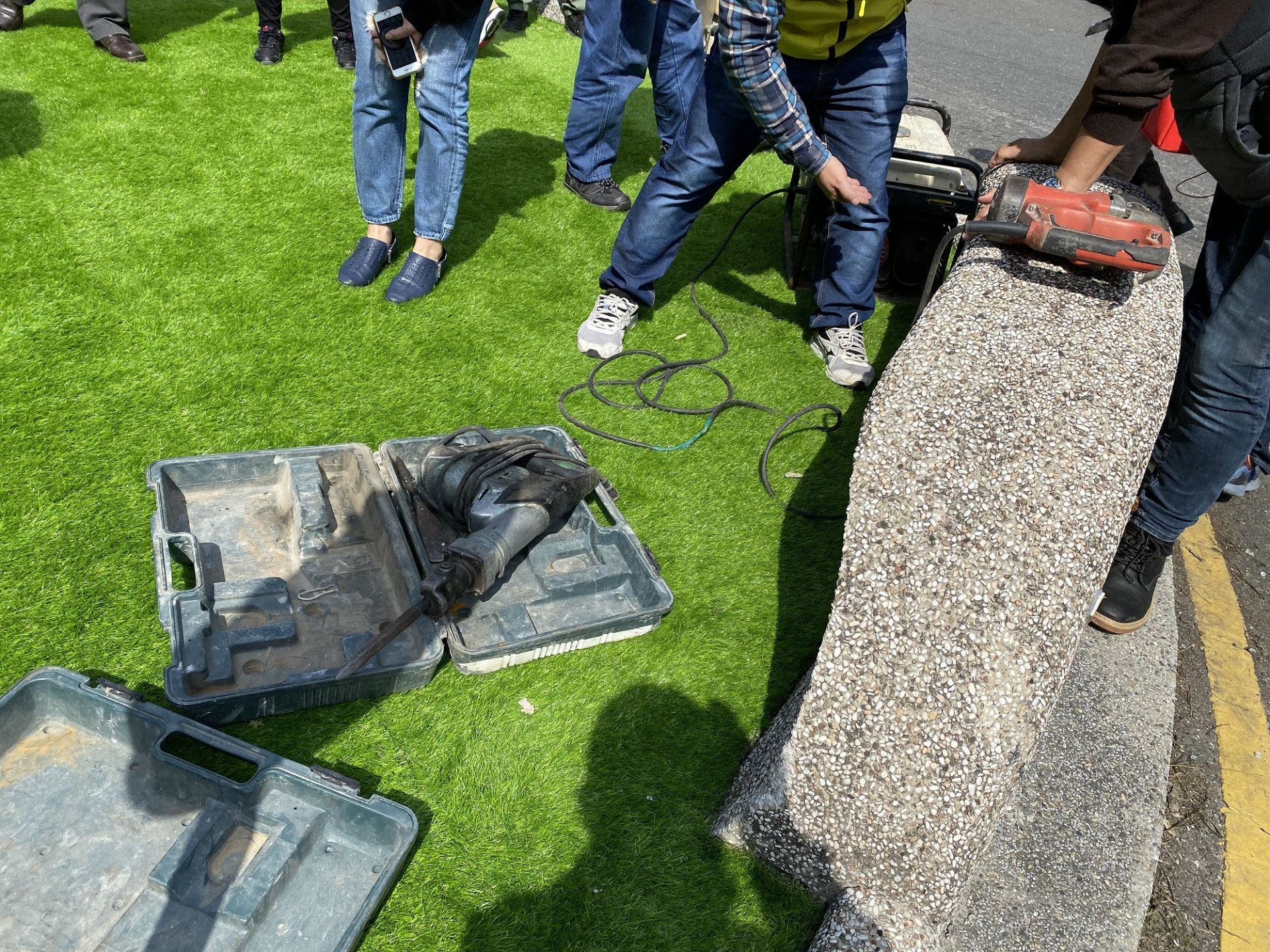 111年2月11日針對六座半圓形的抿石子,進行施工拆除。